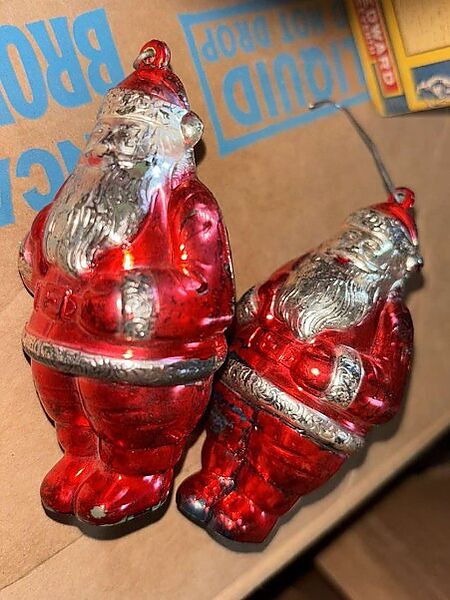 HOLIDAY: Paper Mache Jack-o-lanterns x4; Plastic Mold Valentines; Halloween Noise Makers; Vintage Christmas Ornaments (Mini, Santa, Tree Topper); Angel Party Chimes; Santa Clause & Sleigh Plastic; Paper Mache Christmas Masks; Easter Paper Mache Bunnies; Glass Peter Rabbit; Paper Mache Chicks;