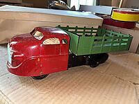 TOYS: Sand Truck Tin Toy; Wyandot Red Cattle Truck; “YOU SHOOT” Marble Game; “Jet Queen” Plastic Speed Boat; “California Spurs”; Lead Soldiers; Metal Toys (Crane Truck; Stock Truck; Airplane; Fire Truck); Chicken Wind Up Clucker; Wyandotte Double Barrel Gun x3; “Playtown Banker”; Gene Autry Pistol x2; Popeye Pipe; Rector Sets; Colorscope; 1941 Pendants; Slinky; 5 Star Pistols; Frog Wind UP;