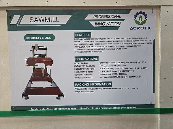 2025 Agrotk YC-26G Portable Sawmill, Unused