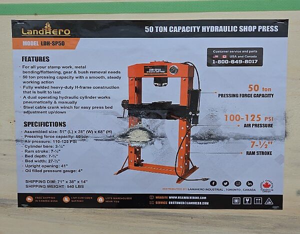 2025 Landhonor LHR-SP50 Shop Press, Unused