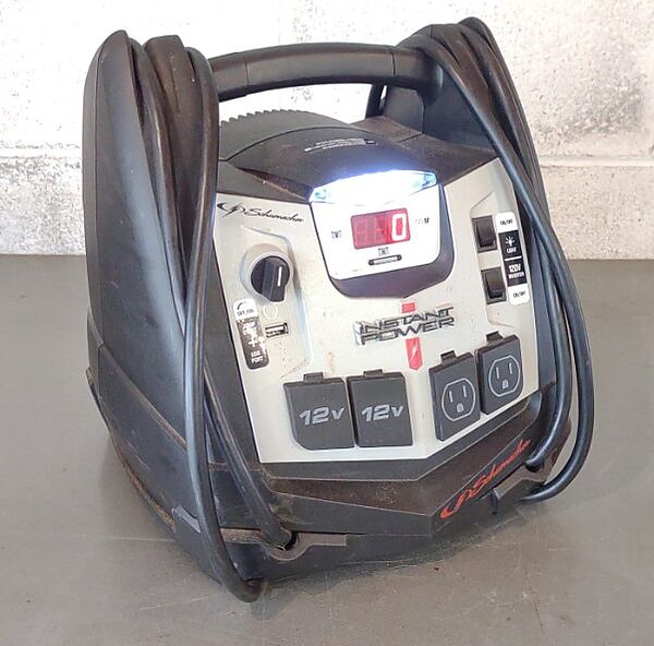 Portable power station features jumper pack, power bank with DC and AC outlets, and air compressor / tire inflator. Working...