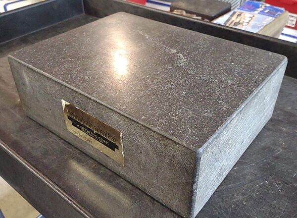 Metroplate granite surface work plate / block. Measures 12" x 9" x 4". Label on front reads "A. Ottavino Corp. Serial number...