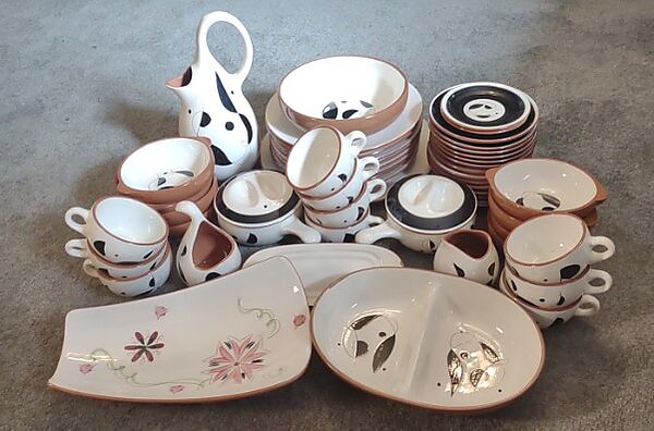 1 table and 4 chair kitchen set with extending center leaf. VERY HEAVY & LARGE, PLEASE BRING HELP TO LOAD.