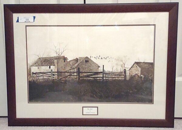 Professional matted and framed dog portrait by Andrew Wyeth.