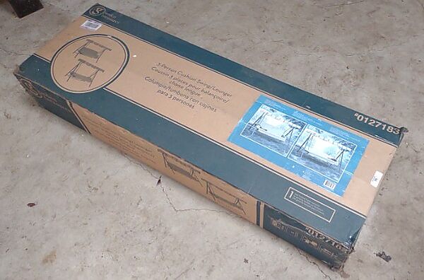 New in box Garden Treasures outdoor Steel 3 Person cushion Swing / Lounger. HEAVY & LARGE, PLEASE BRING HELP TO LOAD.
