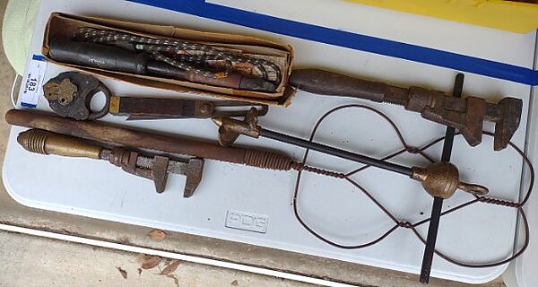Includes 1 Stanley No.610, 1 Mohawk Shelburne and, assortment of antique drill bits.