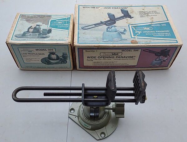Wide Opening Panavise model 396 with low profile base. Includes original boxes.