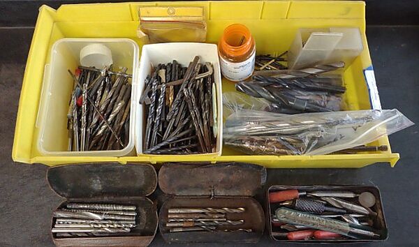 A grouping of many drill bits.