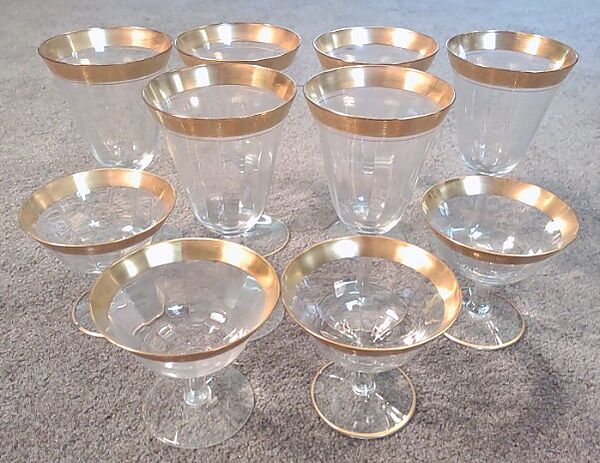 Set of 10 Gold Trim Stemware Drinking Glasses