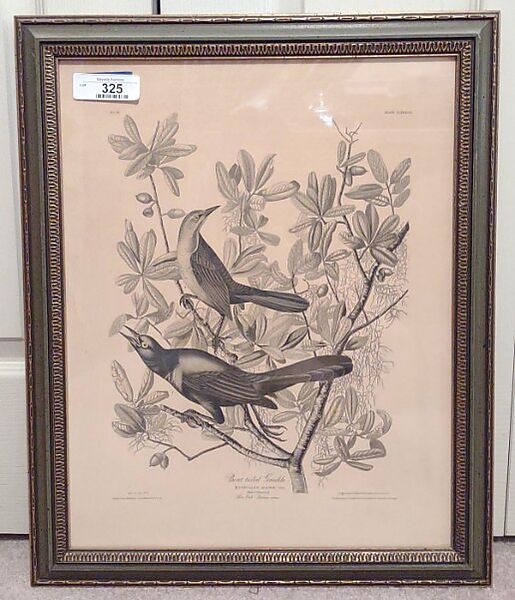 1937 JJ Audubon 'Boat Tailed Grackle' colored lithograph Bird Art in frame.