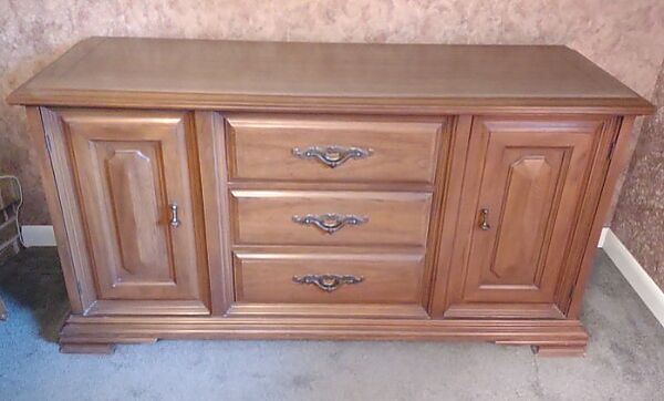 Vintage Solid Wood Chest of Drawers with brass handles. HEAVY & LARGE, PLEASE BRING HELP TO LOAD.