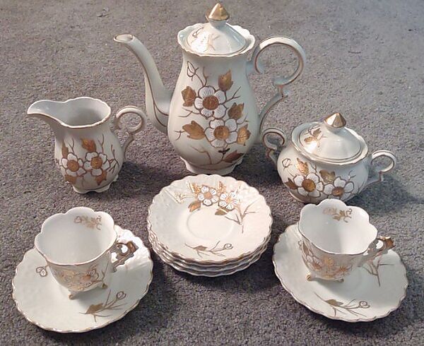 Vintage McCoy Pottery Ivy Teapot, creamer, and sugar set.