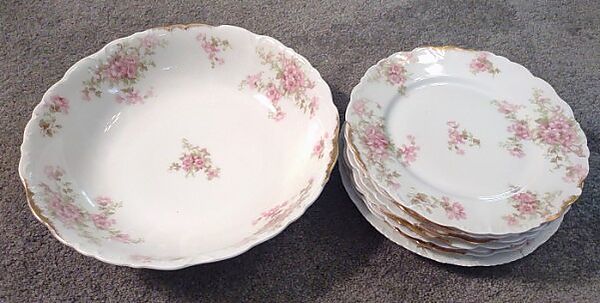 Vintage Theodore Haviland Limoges (France) Porcelain China plate and bowl set. Decorated with floral pink pattern.