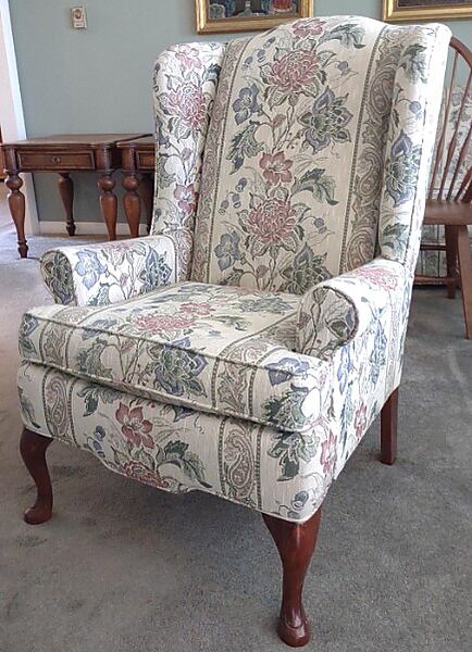 Floral White Pink & Green Wingback Chair. Great condition. HEAVY & LARGE, PLEASE BRING HELP TO LOAD.