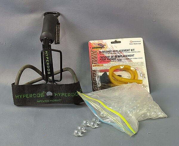 Hyperdog Slingshot, Laserhawk Slingshot Replacement Kit, And Glass Slingshot Ammo