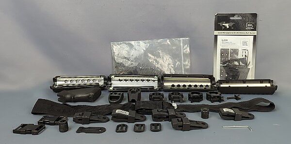 Gun Parts And Accessories, Includes Glock MOS Adapter Set, Hand Guards, Scope Rings, Lone Star Ordnance Pistol Grip, Mag Springs, Strap Buckles, Tarp Clips, And More