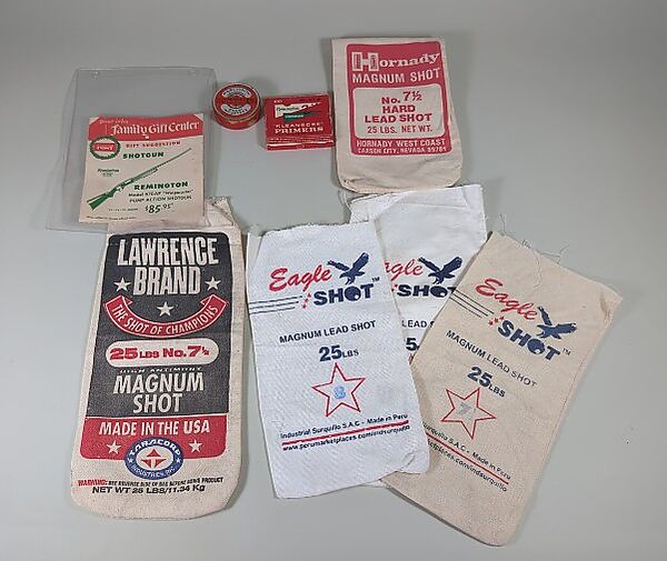 Remington And Martignoni Shotgun Primers, Approx 100 Primers, Includes Family Gift Center Remington Model 870AP Advertisement And Lead Shot Bags, Qty 5, Local Pickup Only