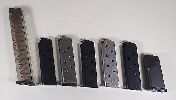 Pistol Magazines, Includes .45 ACP, .40 And 9mm, Brands Include Kimber, Glock And ETS Group, Qty 7