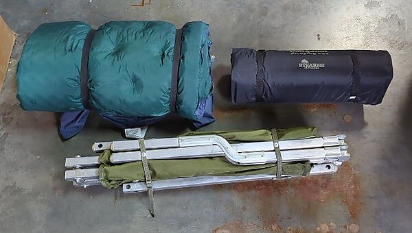 Sleeping Bag, Stearns CampMat Sleeping Pad (25" x 76" x 3"), And Camp Bed Frame