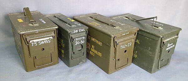 Metal Ammo Cans, 7" X 12" X 6", Qty 3, 7" X 4" X 11", Qty 1