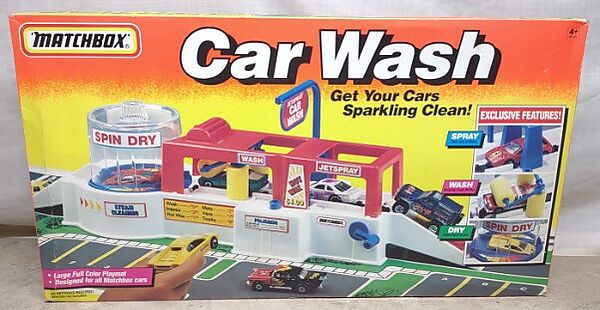 Vintage Tyco Matchbox Spin Dry Car Wash toy sealed in original box.