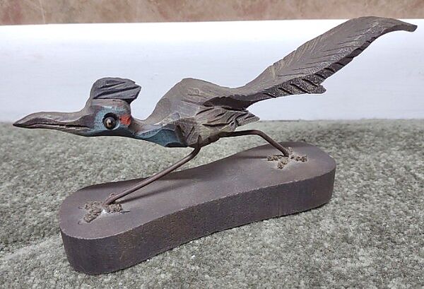 J. Vincent Wooden Roadrunner Bird Sculpture