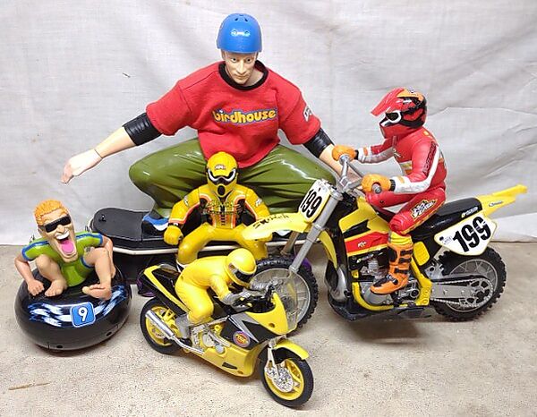 4 Tyco RC Motorcycle and Tony Hawk Toys. Untested, no remotes. From the collection of a former Tyco Toys / Mattel employee.