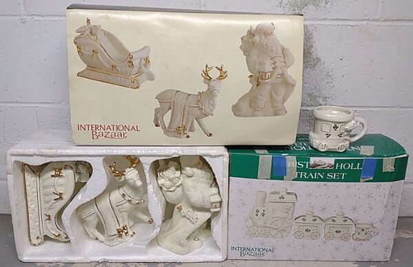 2 International Bazaar Ceramic Christmas Decorations w/ boxes.