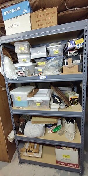 Craft Supplies & Materials w/ Metal Shelf. Must take all contents.