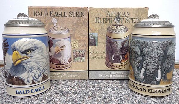 2 Anheuser Busch Endangered Species Beer Steins with original boxes.