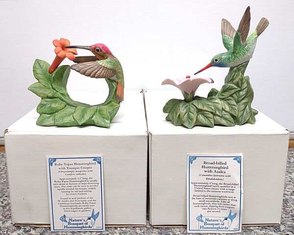 2 Natures Bouquet Hummingbird Sculptures w/ Original Boxes & COA's.